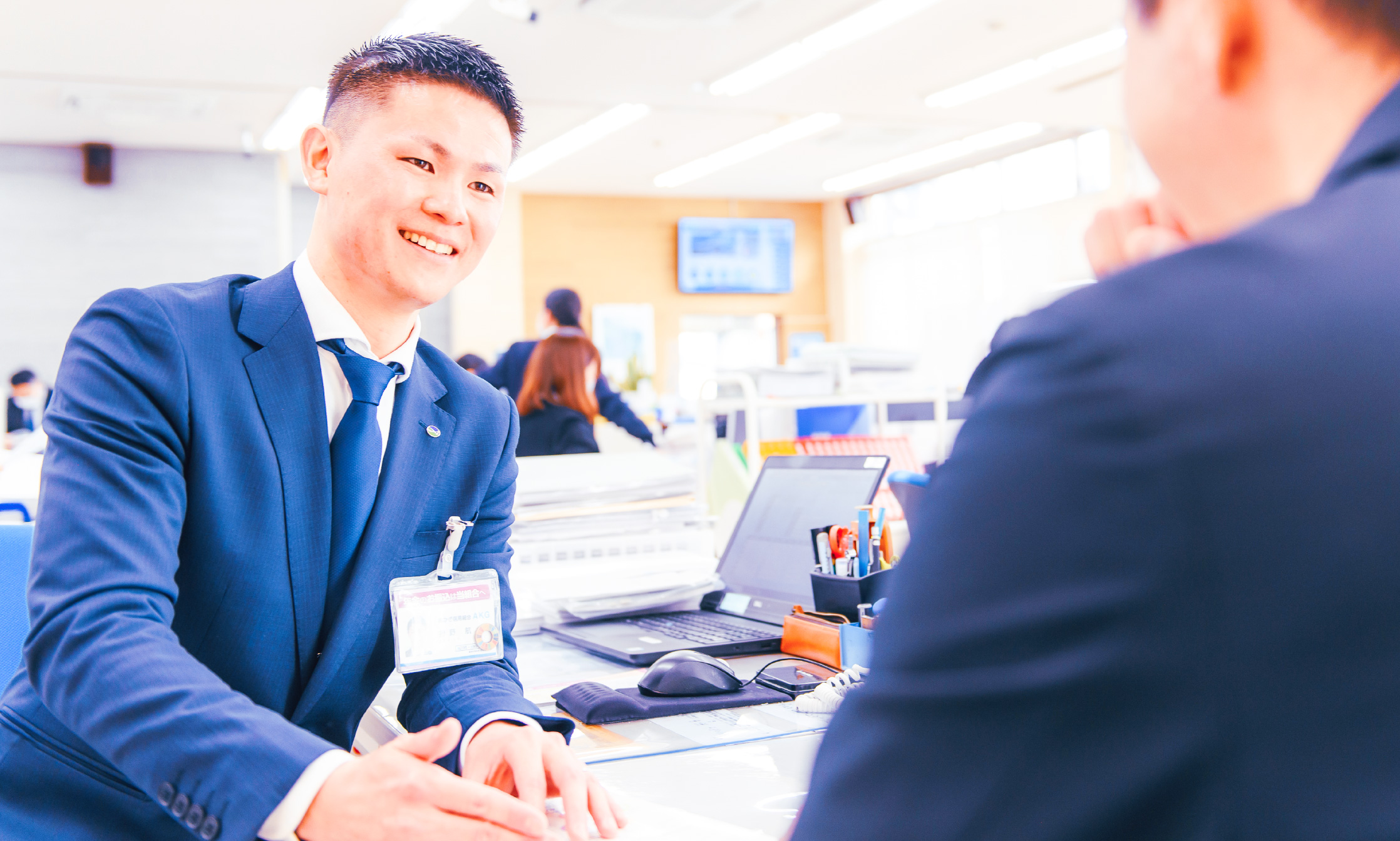 地域と一体となった組織づくりを進めてきた「あかぎ信用組合」。お客様の暮らしや仕事の一歩先をともに見つめるパートナーとして、長きにわたり信頼を積み重ねてきました。まずは自分のためではなく、まわり人のため、地域のため、視野を地域全体に広げて力を尽くす先輩たちに、あかぎ信用組合での仕事の様子を聞きました。